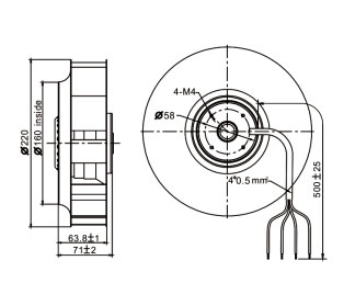 ②组成部件:高效外转子交流电机、PA66增强塑料叶轮、免维护深沟球滚珠轴承、静电粉末喷塑转子。