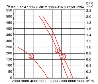 ①性能参数:由4极和6极额定电压为230V和400V,频率50Hz,分单相电容运转和三相异步运转电机组成,最大风量为7680m3/h、8200m3/h和5500m3/h。