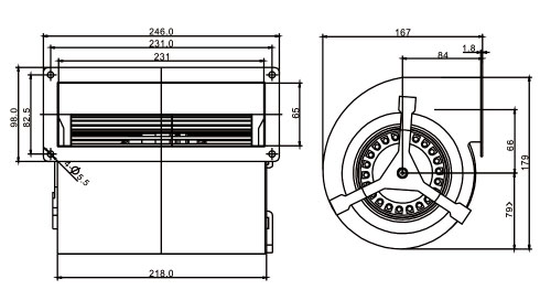 本款产品为2极或4极双进风蜗壳樱桃视频在线播放官网入口。额定电压为230V,额定电流从0.33